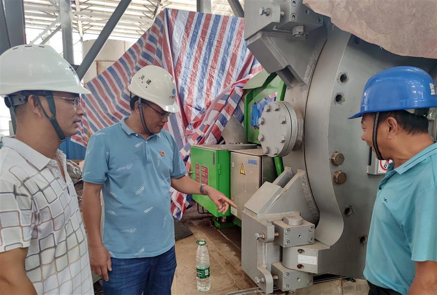 黃翔峰(右一)正在檢查項(xiàng)目