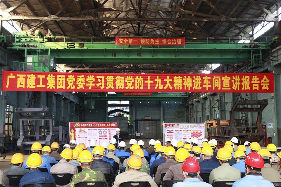 12月6日下午,廣西建工集團黨委委員、副總經(jīng)理侯立林到冶建公司壓力容器制造廠鉚焊車間進行學習貫徹黨的十九大精神進工地、進車間宣講報告。
