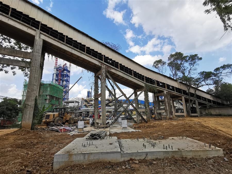251砂巖長皮帶機(jī)輸送廊是魚峰水泥廠唯一一條進(jìn)砂巖破碎料的輸送鏈,是廠內(nèi)生產(chǎn)原料的臍帶。本次接駁任務(wù),業(yè)主要求在七天時(shí)間內(nèi)完成拆除重建工作,是歷次接駁工作中工期最緊、任務(wù)最重的一次接駁工作,各項(xiàng)專業(yè)工作必須需銜接緊密,環(huán)環(huán)相扣。同時(shí),需拆除的八跨斜廊道均為預(yù)制梁板結(jié)構(gòu),高度大,拆除環(huán)境復(fù)雜,廊道下方有已完工的設(shè)備基礎(chǔ)、正在運(yùn)行的皮帶機(jī)輸送廊及高壓電纜溝需要進(jìn)行保護(hù),施工風(fēng)險(xiǎn)高、難度大。
