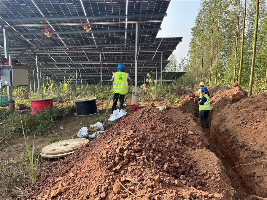 節(jié)后復(fù)工復(fù)產(chǎn)以來(lái),項(xiàng)目接地網(wǎng)開挖敷設(shè)完成1235米,低壓電纜敷設(shè)完成1285米,光伏專用電纜敷設(shè)完成14760米,圍欄安裝1030米。