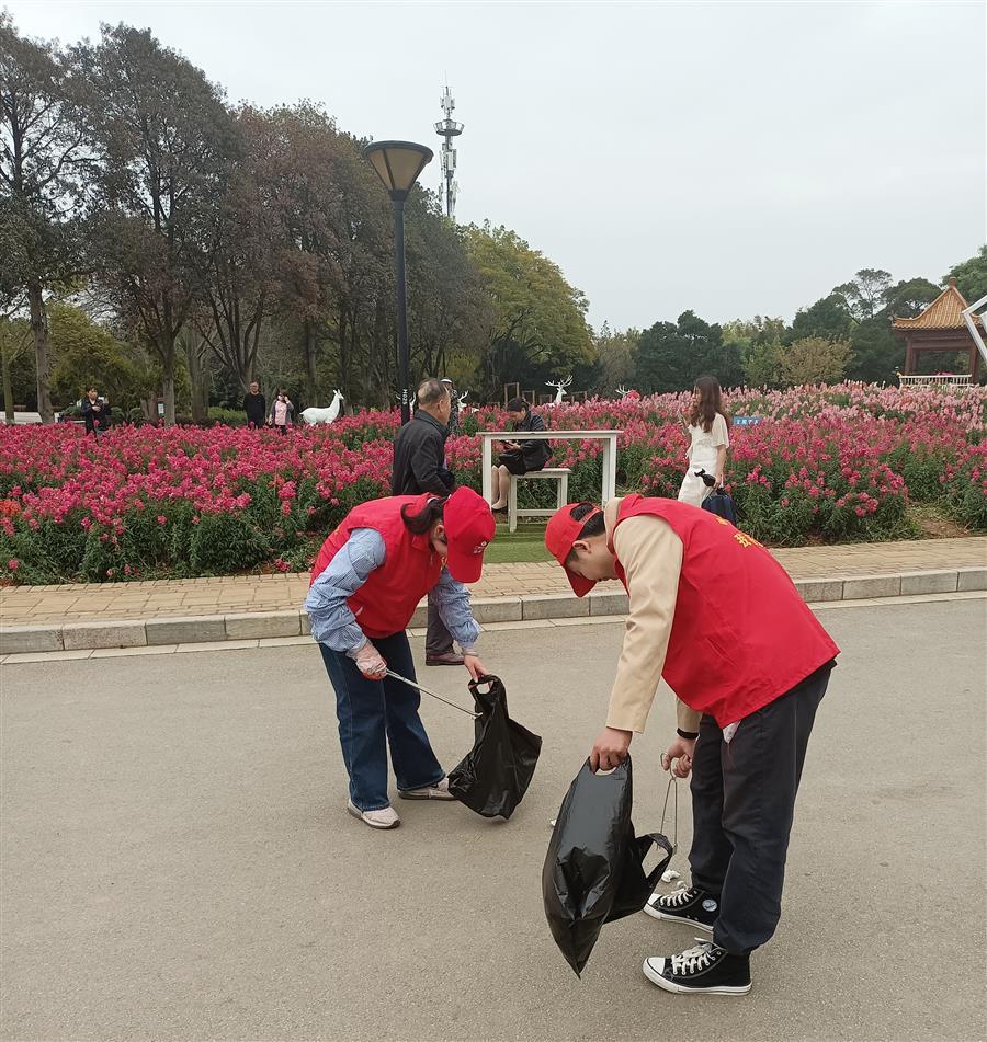 活動(dòng)中,大家分工明確、各司其責(zé),細(xì)致耐心地?fù)焓安萜汉偷缆飞系墓ぜ埿肌b袋等垃圾,并將垃圾分類,維護(hù)公園干凈整潔的衛(wèi)生環(huán)境。