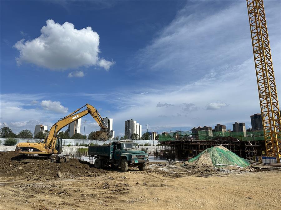 在農(nóng)投思賢幸福加項(xiàng)目,技術(shù)人員測繪、工人在綁扎鋼筋各作業(yè)面工作人員緊張忙碌地開展工作;施工機(jī)械運(yùn)轉(zhuǎn)不停、運(yùn)輸車輛來回穿梭,一派繁忙景象。