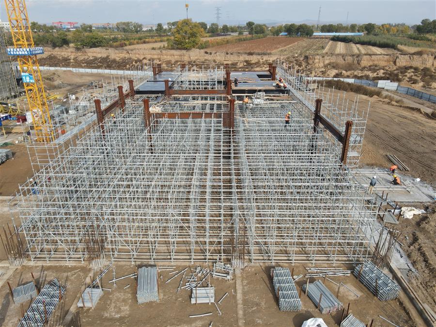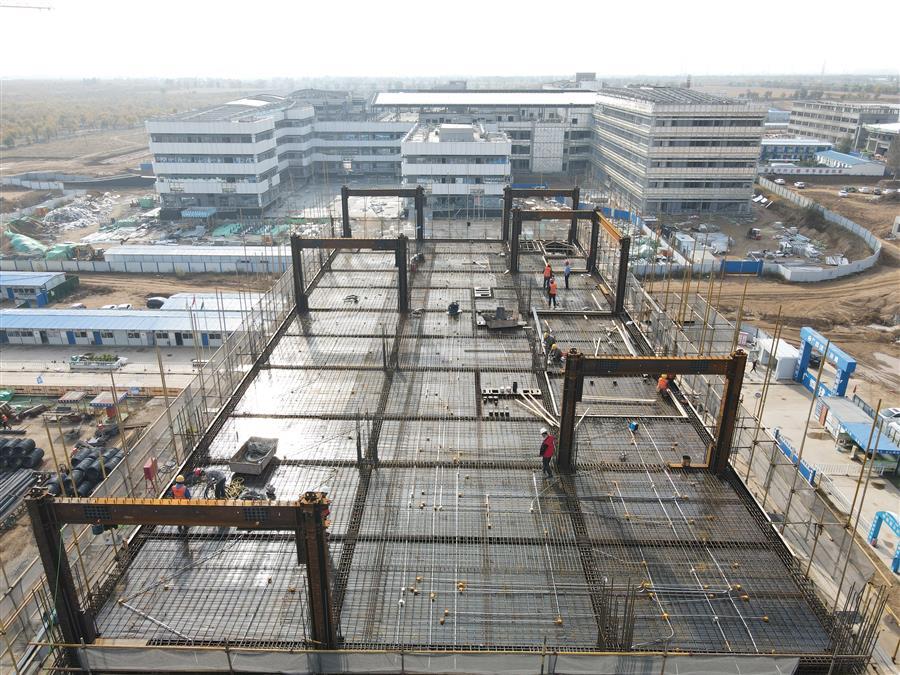在施工現(xiàn)場,到處可見建筑工人們忙碌的身影,大家分工合作,井然有序地進行病房北樓梁板鋼筋綁扎、水電消防線管預(yù)埋、鋼結(jié)構(gòu)吊裝、醫(yī)技區(qū)東段盤扣架搭設(shè)、汽車坡道混凝土澆筑等工作面施工,各作業(yè)面協(xié)同推進,現(xiàn)場掀起“大干”熱潮。