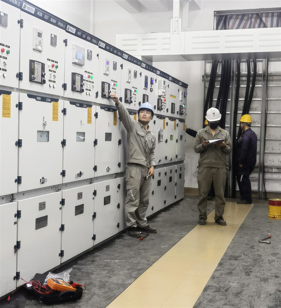 為確保按時順利送電,項目部多次組織技術(shù)人員對電氣樓進行檢查確認(rèn),特別是對高低壓柜、隔離開關(guān)等設(shè)備的功能、絕緣進行了多次檢查和測試,為保證整個送電過程安全順利進行創(chuàng)造了有利條件。