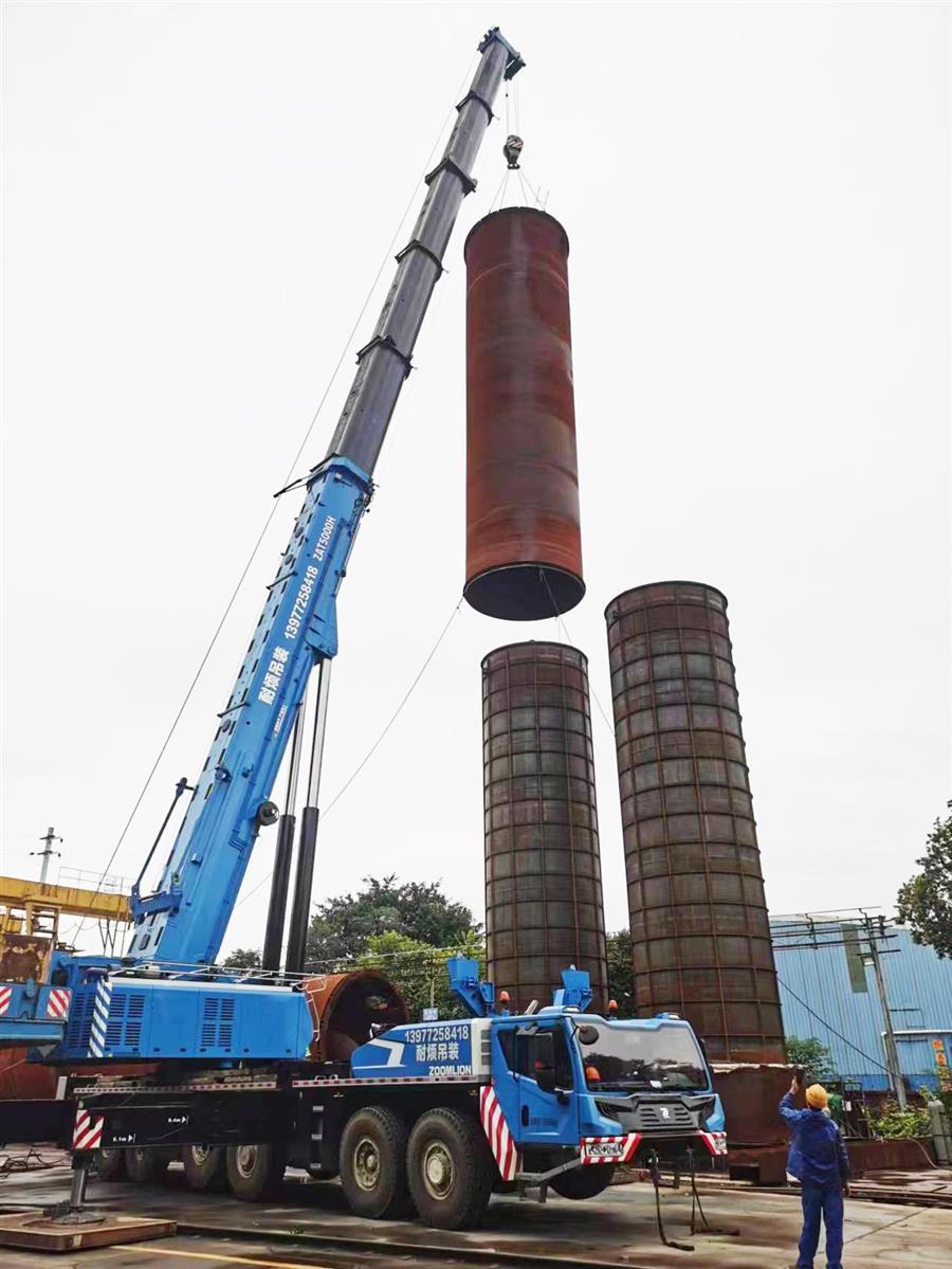 該工程共制作壓力容器設(shè)備4臺(tái),其中空氣預(yù)冷系統(tǒng)空冷塔1臺(tái),塔身直徑4.236米,塔高28.450米,塔重約71噸;水冷塔1臺(tái),塔身直徑3.824米,塔高22.1米,塔重約38噸;分子篩吸附器2臺(tái),塔身直徑4.236米,塔高18.120米,塔重約63噸。