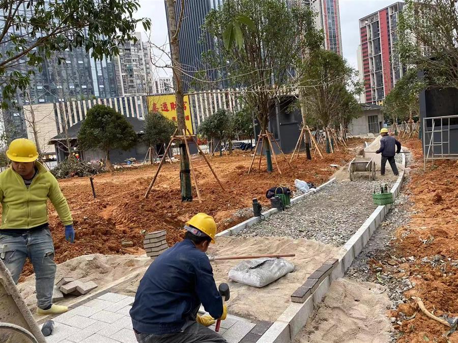 為如期實現(xiàn)建成目標,項目部積極協(xié)調(diào)各方力量,科學(xué)合理安排工序,在保證安全生產(chǎn)和施工質(zhì)量的前提下,全力加快推進項目建設(shè),爭取早日完成地面部分工程,達到開放條件。截至目前地下室框架已完成,室外給排水管道完成95%,路面路基整形完成100%,園林綠化完成80%,出入口裝飾裝修完成80%,地面鋪裝完成80%。
