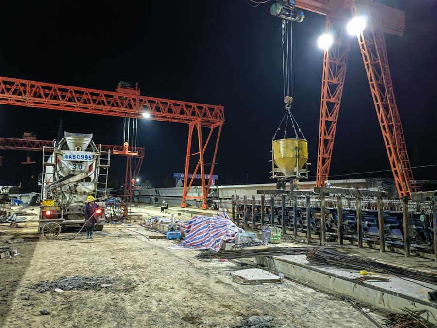 近期天氣狀況多變,部分施工場地需要復(fù)墾,影響施工進(jìn)度。面對困難和挑戰(zhàn),項(xiàng)目部嚴(yán)格按照施工方案,結(jié)合現(xiàn)場實(shí)際情況,通過精心組織技術(shù)交底,科學(xué)部署,發(fā)揚(yáng)“5+2”“白加黑”連續(xù)作戰(zhàn)精神,全力以赴推進(jìn)項(xiàng)目建設(shè)。截至目前,該項(xiàng)目累計(jì)完成樁基礎(chǔ)澆筑184根、橋梁上構(gòu)預(yù)制梁澆筑136片、橋梁下構(gòu)澆筑完成22道地系梁、50根墩柱和18片蓋梁、2個(gè)橋臺(tái),完成路基回填土5萬方。