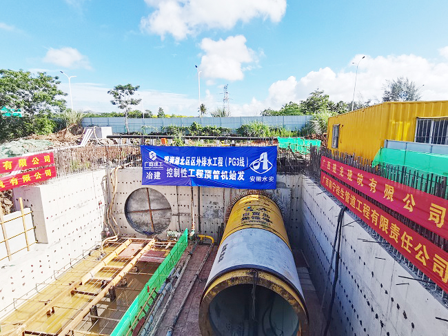 觀瀾湖北區(qū)區(qū)外排水工程(PG3 線)項目位于海南省??谑杏^瀾湖北區(qū),主要建設(shè)內(nèi)容為布置4.79km長的排水箱涵。項目所處位置的地質(zhì)環(huán)境復(fù)雜,還緊鄰高速公路,工作井靠近魚塘和高壓電塔,地上管線多,給施工作業(yè)帶來重重困難和挑戰(zhàn)。為了保證施工質(zhì)量和建設(shè)效率,第三分公司邀請專家精心策劃施工方案、組建精英團隊施工,項目團隊提前規(guī)劃好了運輸路線,并與交通部門緊密協(xié)調(diào),確保了各項準(zhǔn)備工作的周全,為項目建設(shè)順利進行奠定了堅實的基礎(chǔ)。
