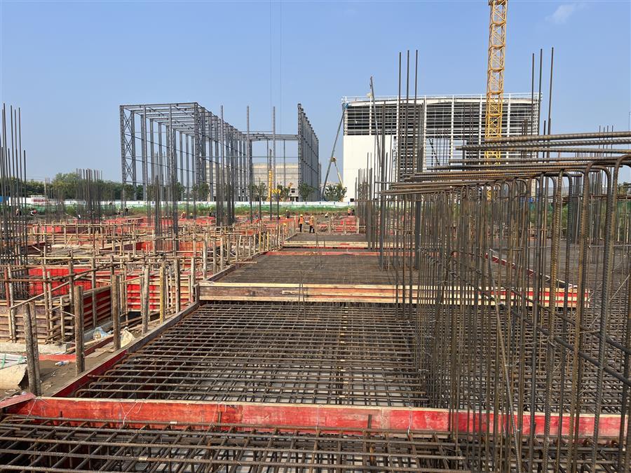 為確保項目建設(shè)順利開展,項目部制定科學的施工方案,合理安排施工時間,認真抓好安全生產(chǎn)工作,嚴把質(zhì)量關(guān)。目前,項目已完成了3#高標庫基礎(chǔ)混凝土墊層、4#分揀中心及6#冷庫的 CFG 樁、2#分揀中心基礎(chǔ)混凝土墊層等施工內(nèi)容,2#高標庫基礎(chǔ)擋墻鋼筋綁扎已完成100%,模板安裝已完成70%。