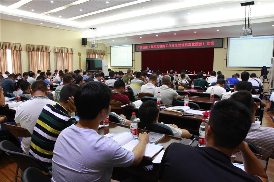 《文明施工與安全管理標(biāo)準(zhǔn)化圖集》為廣西建工集團(tuán)有限責(zé)任公司組織編制,是廣西建工集團(tuán)及所屬各公司共同遵守和執(zhí)行的安全文明施工標(biāo)準(zhǔn),是實(shí)現(xiàn)廣西建工集團(tuán)安全文明標(biāo)準(zhǔn)化生產(chǎn)的重要文件,其內(nèi)容分為五大部分,分別為:安全標(biāo)準(zhǔn)化管理、現(xiàn)場(chǎng)安全文明施工標(biāo)準(zhǔn)做法、安全色與安全文化、信息化管理、綠色施工等,其中包含安全防護(hù)措施和文明施工效果圖、平面圖、大樣圖、做法說明,涵蓋了項(xiàng)目組織機(jī)構(gòu)、安全教育、安全檢查、應(yīng)急救援、現(xiàn)場(chǎng)圍墻、大門做法、場(chǎng)地硬化、腳手架、基坑防護(hù)、高處作業(yè)、模板支架、塔吊、施工升降機(jī)、施工用電、起重吊裝、施工機(jī)具、辦公區(qū)、生活區(qū)設(shè)置、員工工作服、安全帽設(shè)計(jì)等,基本包括項(xiàng)目施工安全文明標(biāo)準(zhǔn)化管理全部?jī)?nèi)容,整個(gè)圖集觀看簡(jiǎn)便、操作方便,適用性強(qiáng)。培訓(xùn)過程中,蔣小緩副處長(zhǎng)全面詮釋了標(biāo)準(zhǔn)化圖集各分部分項(xiàng)的要求和做法,展示現(xiàn)場(chǎng)實(shí)做正確與錯(cuò)誤的照片,并播放了廣西兆安·現(xiàn)代城安全文明標(biāo)準(zhǔn)化示范工地視頻短片,豐富了培訓(xùn)內(nèi)容,活躍了課堂氣氛,提高了培訓(xùn)質(zhì)量,各參加培訓(xùn)人員認(rèn)真傾聽,做好筆記,課堂紀(jì)律良好,使培訓(xùn)達(dá)到了應(yīng)有的培訓(xùn)效果。