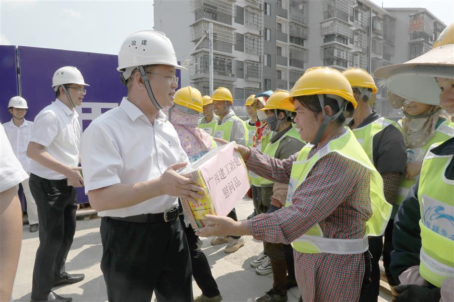 夏日炎炎,高溫不斷,工作不停,節(jié)奏不減。隨著高溫天氣的到來,冶建公司2023年“送清涼”慰問活動(dòng)正式開啟。7月27日,冶建公司董事長、黨委書記覃振華,帶著清涼慰問品,到第七分公司承建的原柳州市第三棉紡織廠集資建房項(xiàng)目施工現(xiàn)場(chǎng),慰問持續(xù)戰(zhàn)斗在一線的勞務(wù)工人和項(xiàng)目管理人員。