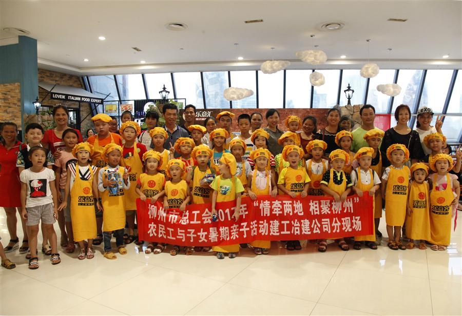 8月11日下午,在柳州步步高廣場樂意匯休閑餐廳中充滿著孩子的歡聲笑語,“2017年‘情牽兩地,相聚柳州’農(nóng)民工與子女暑期親子活動(dòng)建工冶建公司分會場”活動(dòng)在這里溫情開展。此次活動(dòng)由柳州市總工會主辦,廣西冶建公司工會承辦,近四十個(gè)農(nóng)民工家庭歡聚一堂,共同享受平日里難得的清閑與快樂。