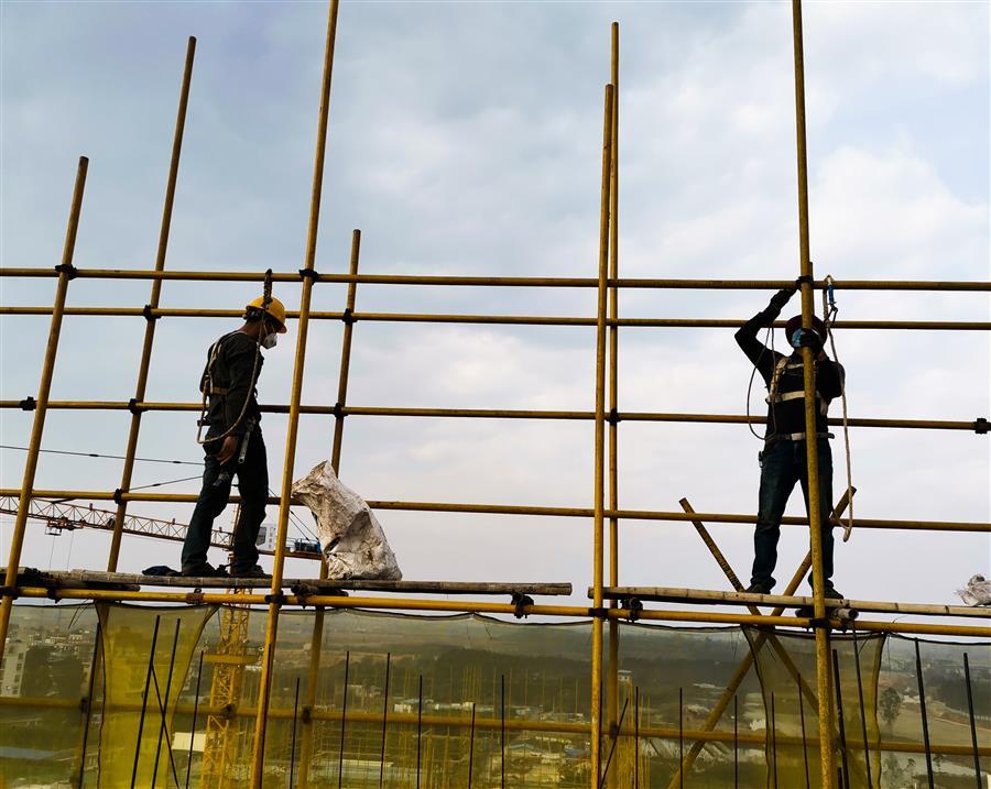 在中房綠景二期項目現(xiàn)場,機器轟鳴,不同工種的工人正在緊張有序開工,一幅熱火朝天的景象替代了往日的寂靜。