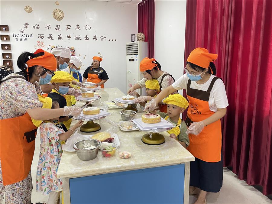 活動(dòng)現(xiàn)場(chǎng),家長(zhǎng)和孩子們聆聽(tīng)了紅色詩(shī)歌朗誦,現(xiàn)場(chǎng)共同繪制了主題畫(huà)作。并在講解員的帶領(lǐng)下參觀了中央工廠,了解了糕點(diǎn)生產(chǎn)過(guò)程。參觀后,大家一起觀看專業(yè)糕點(diǎn)師的現(xiàn)場(chǎng)教學(xué)并體驗(yàn)了蛋糕制作。一個(gè)小時(shí)后,一個(gè)個(gè)造型別致、想象奇特、富有童趣的親子蛋糕新鮮出爐。家長(zhǎng)與小朋友們手捧自己制作的蛋糕拍照,現(xiàn)場(chǎng)氛圍其樂(lè)融融。