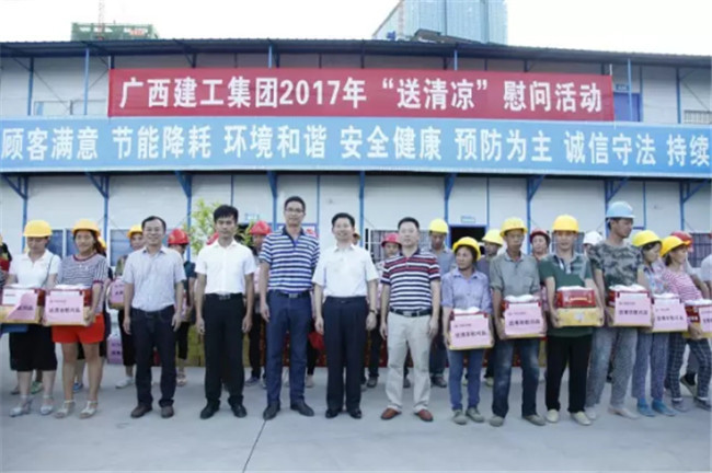 柳州市高新區(qū)科技園專(zhuān)家公寓樓工程由我司桂華分公司承建。8月7日下午,廣西建工集團(tuán)副總經(jīng)理侯立林冒著高溫酷暑,專(zhuān)程從南寧前來(lái)項(xiàng)目建設(shè)現(xiàn)場(chǎng)給一線職工和農(nóng)民工“送清涼”,公司領(lǐng)導(dǎo)歐志永、賴(lài)海標(biāo)、廖立波參加活動(dòng)。130多份價(jià)值9000多元的慰問(wèn)品,在十多分鐘的時(shí)間里,全部發(fā)放完畢。